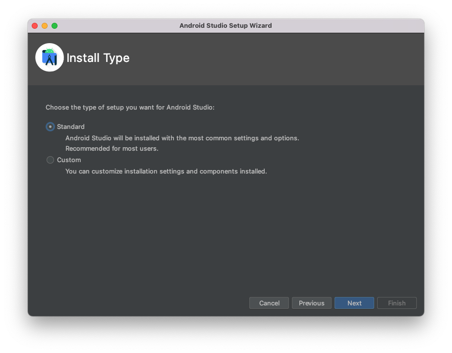 설치 후 안드로이드 스튜디오를 최초실행하면 다음과 같은 창이 나타납니다.